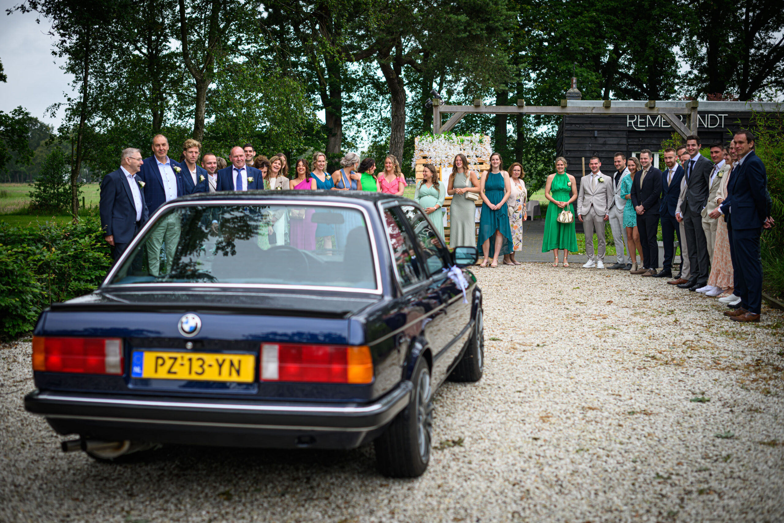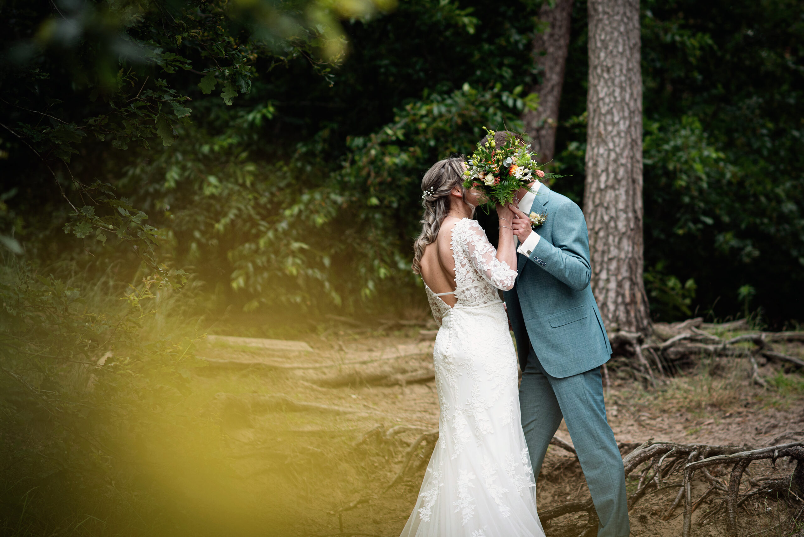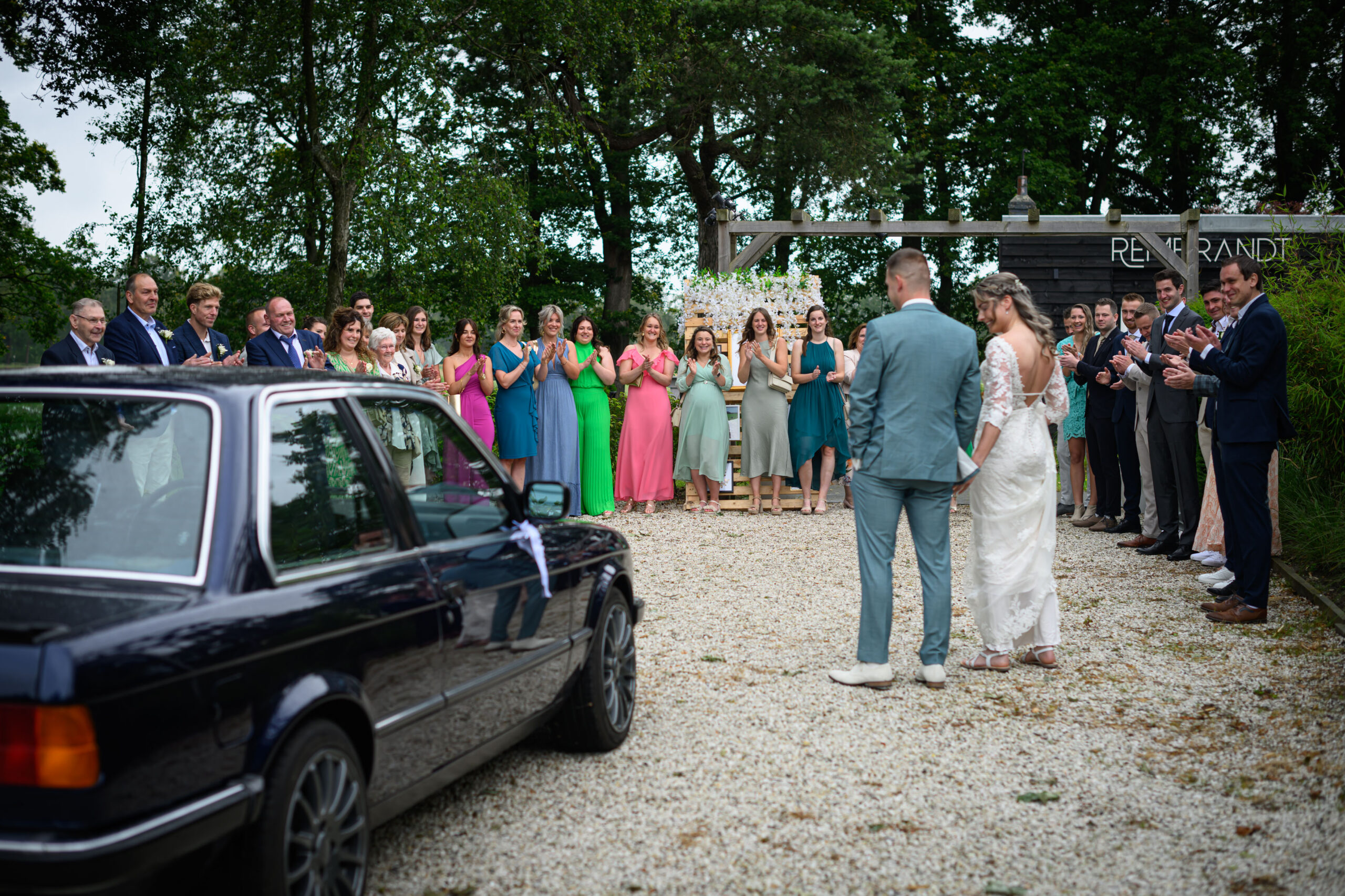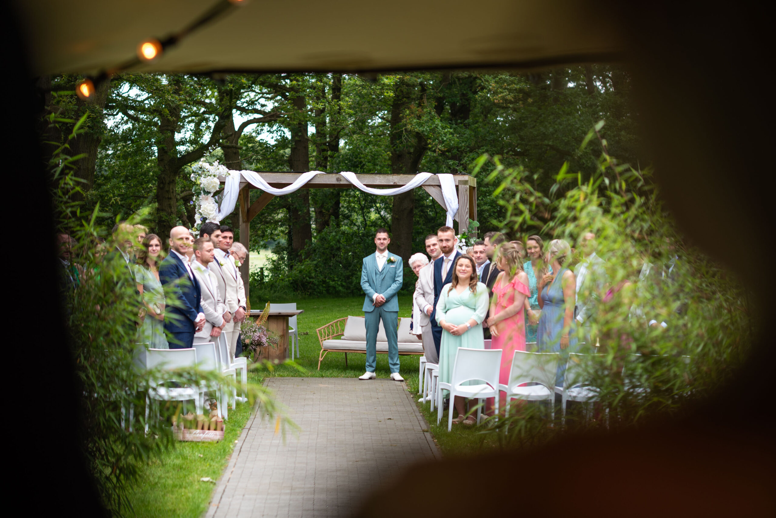 Hun dag begon droog, maar helaas begon het toch wel te miezeren tijdens de ceremonie… en wat doe je dan? Gewoon KEIHARD negeren! En niet alleen het bruidspaar, maar alle daggasten ook! Hah!